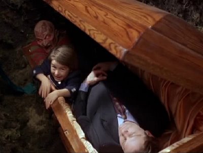 The early Nightmare on Elm Street films – whether they’re good (one and three) or bad (the rest) – focused on maximalist scares – full of big special effects, buckets of gore and a sneering Freddy centre-frame. In New Nightmare the scares are subtle, building upon real fears – a child’s fear of the boogeyman under the bed, or the fear of death (best seen in a fantastic funeral scene that aches with loss). Elements of the narrative are based on Heather Langenkamp’s real experiences with a stalker, and they carry an eerie realism.