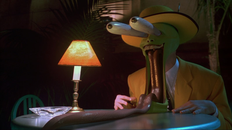 I was ten years old when The Mask was released, and it quickly became my favourite film: to the point where I had a sizable collection of trading cards from the movie. It’s not hard to see why: there’s cartoonish excess – from the humour and bright palette to Jim Carrey’s broad performance (not a complaint: his no-holds-barred rubber-faced performance is exactly what the film needs) – but there’s also a dark undercurrent, with grim mobsters, violence and a noir-ish femme fatale (Cameron Diaz, making her memorable debut). There’s some deep shadows behind this mask, and they hooked the imagination of my younger self, on the boundary between Saturday morning cartoons and something more mature.