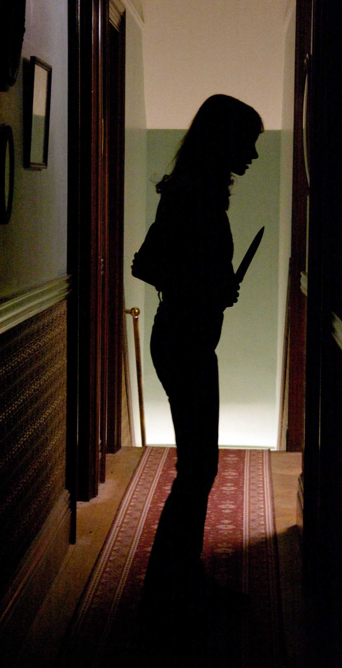 But we know all this. So when Samantha tiptoes around the seemingly empty house (the “relative’s” room is actually occupied by mutilated corpses), there’s an unbearable tension, even when she’s doing little more than eating pizza or investigating a closet.