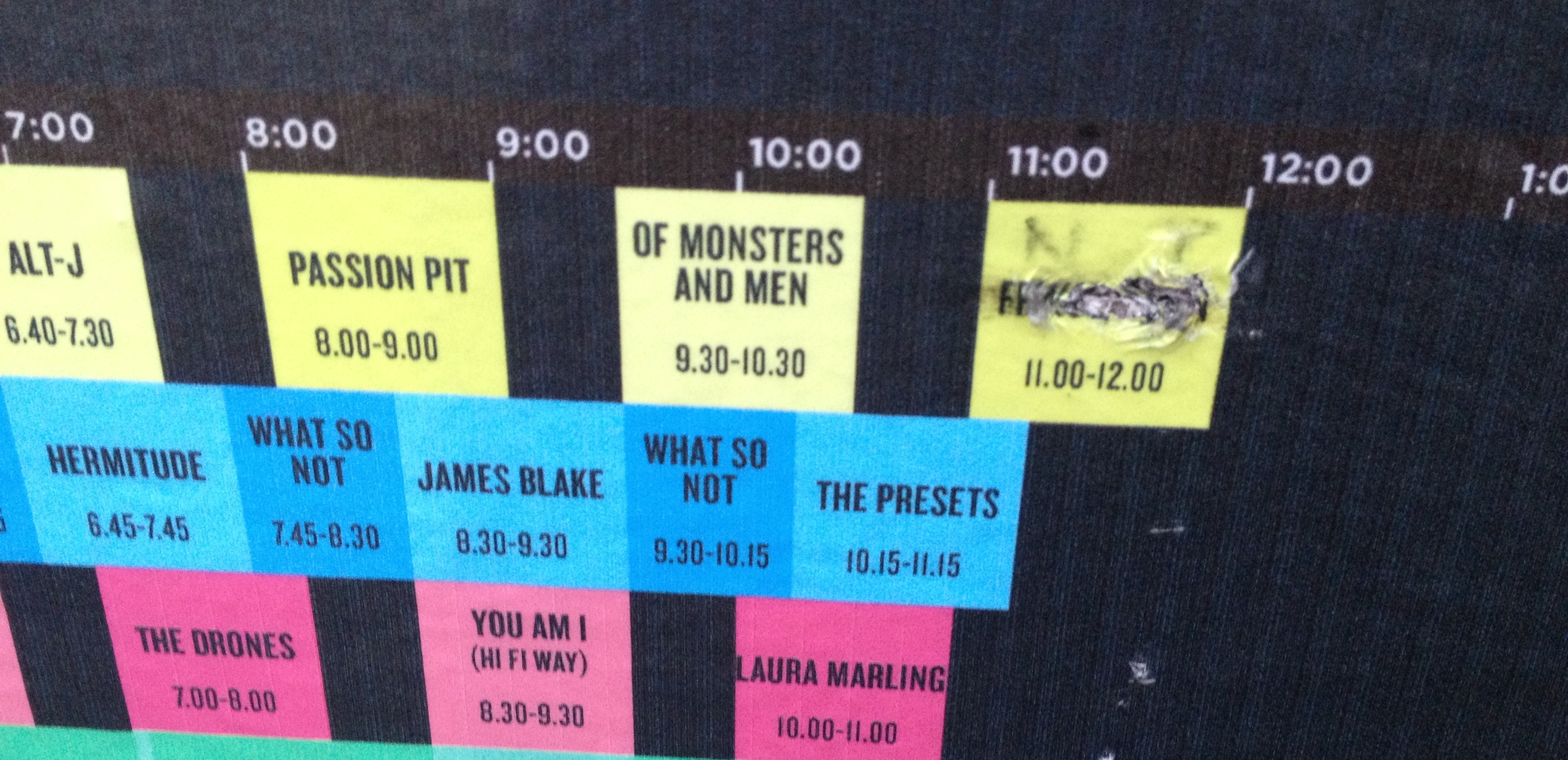 The Passion Pit performance that followed was far from delicate, a full-bodied dance rock with an emphasis on the dance part. Singles like “Carried Away,” “Take a Walk” (which had the entire crowd trying out their own version of a dance-walk concoction) and, of course, closing numbers “Little Secrets” and “Sleepyhead” captured the pop sheen of the songs on record bulked up with a more muscular exoskeleton. Their album deep cuts weren’t as compelling; I’ve always found their discography to be pretty top-heavy, but I was certainly happy that I was able to catch them and James Blake after the Ocean-inspired timetable reshuffle.