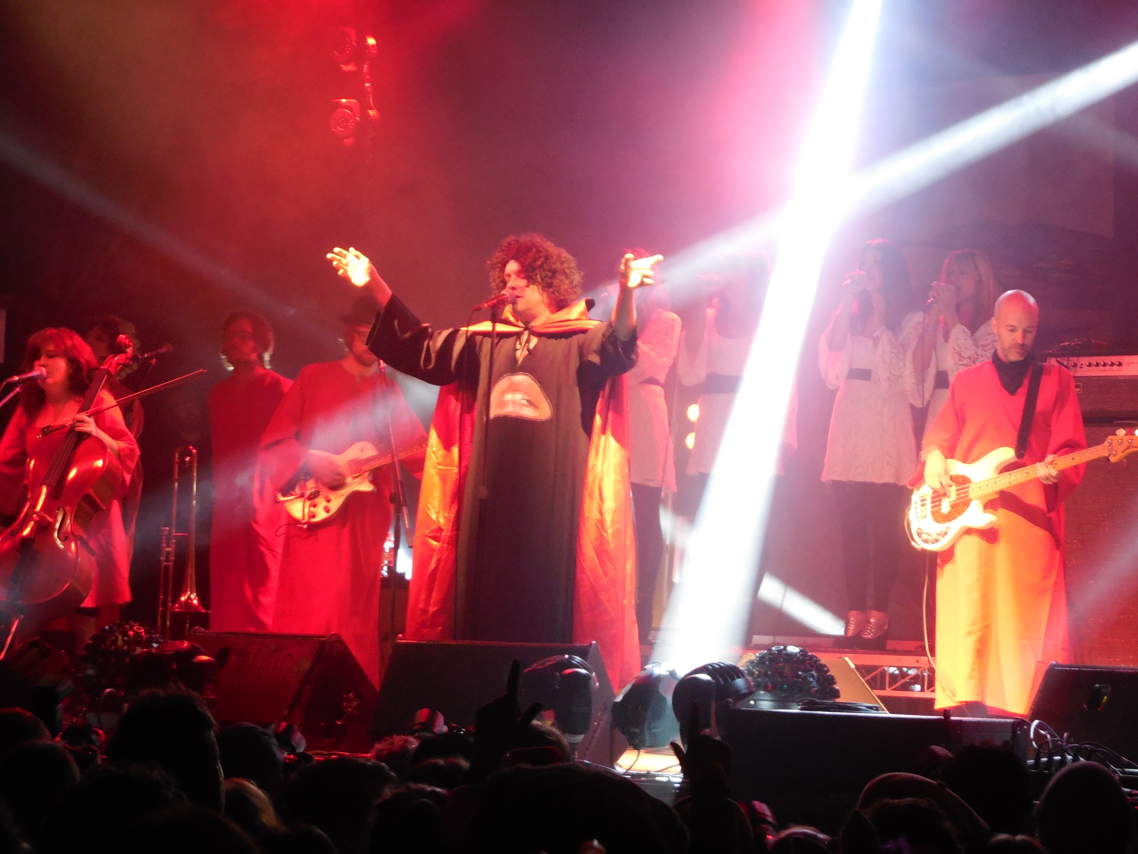 All this – Tim Rogers’ wonderful soliloquy, Palma Violets’ British brattery, Chet Faker’s icy lullabies – were merely aperitifs, entrées for the main course: The Polyphonic Spree. The Polyphonic Spree are a large band, a pop conglomerate, an eclectic collection of a dozen plus members – what I’m really trying to say is that they’re a movement, a cult, one I cheerfully joined back in Splendour ’07 when they put on a celebratory, divine performance that’s still imprinted in my memories. It’s fitting then, that they would tackle one of the biggest cult films of all time, The Rocky Horror Picture Show, a movie overflowing with style and insanity.