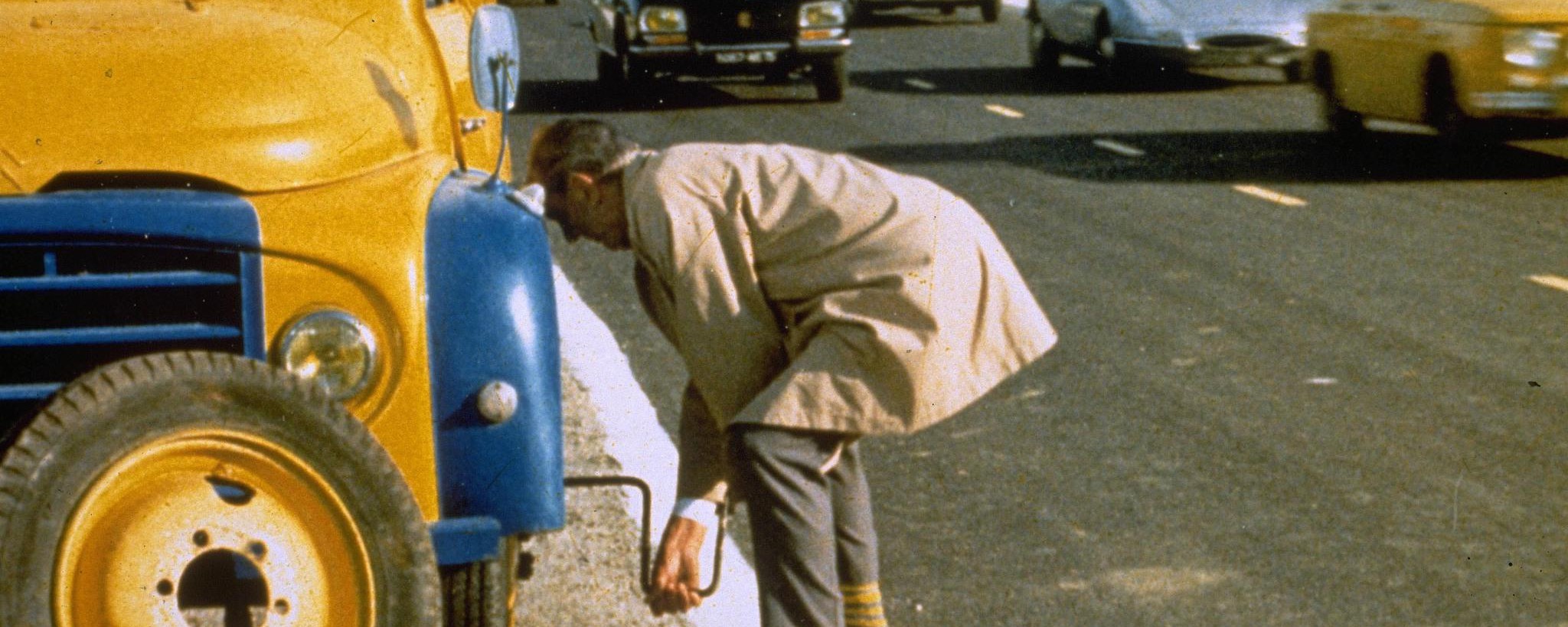 Tati’s follow-up, Trafic, could only be regarded as a “lesser” film when directly compared with Playtime. It’s not quite a masterpiece, but it is a fantastic work of art. Following an innovative new “camping car” on its ill-fated journey from Paris to an Amsterdam car show, the film feels in many ways like a retrospective on his career. There’s the stopover in the small town to collect fuel recalling Jour de Fête, or a tire-changing scene that reminds us of a similar scene in Les Vacances de Monsieur Hulot. The chaotic car factory – where Hulot is employed as designer – is analogous to the chaotic hose factory of Mon Oncle, while the auto-show itself recalls both the airport and trade show of Playtime. Then again, perhaps I’m simply seeing things after watching a whole bunch of Tati in a row.