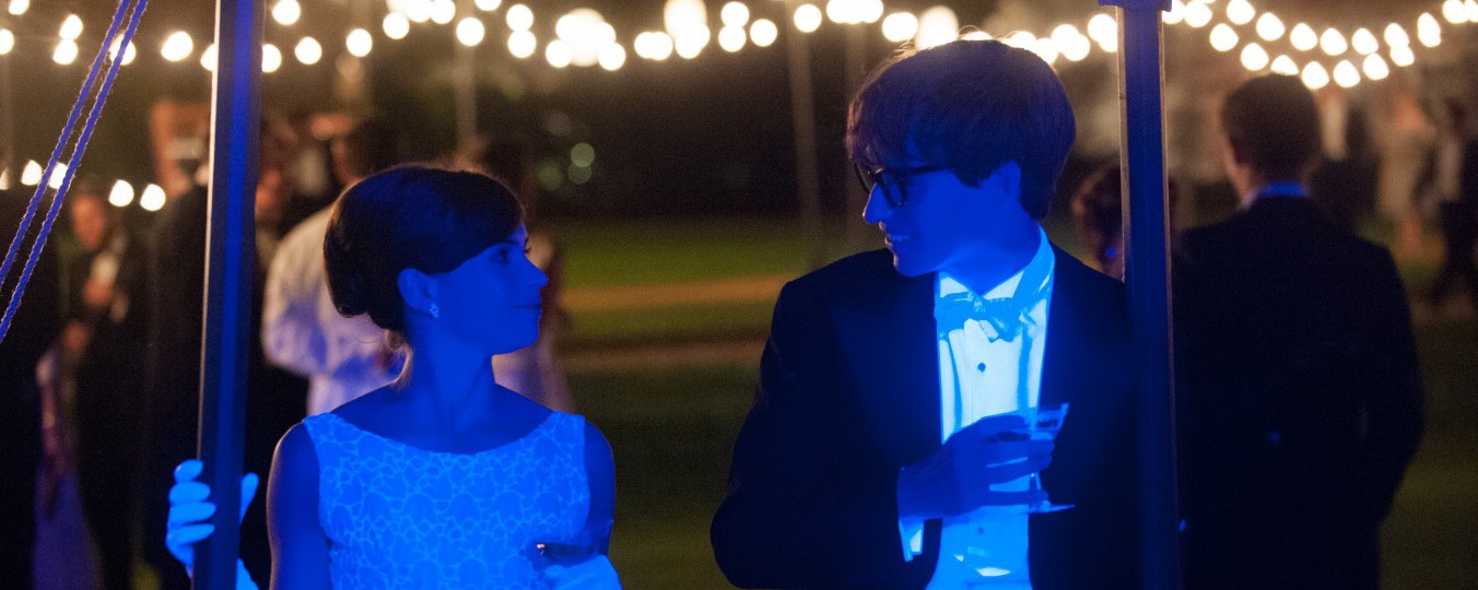 It stands to reason, then, that the fourth iteration would have to do some serious legwork to distinguish itself from the pack (and, oh, say, pick up five Oscar nominations while it’s at it). The Theory of Everything, to its credit, executes its familiar biopic formula with aplomb. James Marsh’s direction is a hair above competent, mixing up big, capital-P Prestige filmmaking – an embrace on a starlit bridge is shot with a crane shot and illuminated by fireworks since of course it is – with some almost outré touches – such as slapping a nostalgic blue filter over the first meeting of Hawking (Eddie Redmayne) and his first wife Jane (Felicity Jones), or enveloping Hawking with an irate red hue as he stews after learning of his disease.