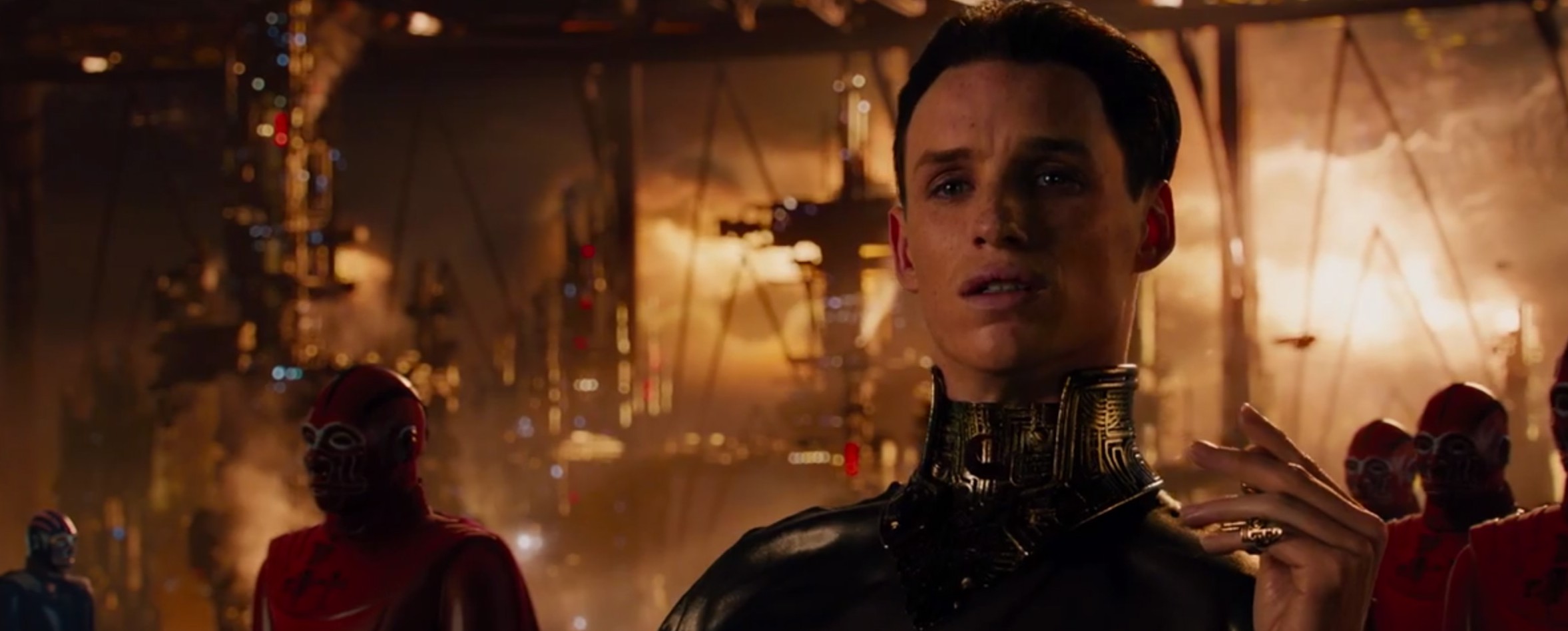 Kunis and Tatum are somewhat to blame here. Each delivers dead-eyed performances absent any kind of emotion or engagement. If you look deep into their eyes you can see the word “paycheque.” This is true of the majority of the cast, actually; only Eddie Redmayne’s deeply unhinged, utterly weird performance as the baddest Abrasax keeps your interest. Sure, it’s probably a bad performance, especially from someone about to win an Oscar – he’s been roundly and probably rightly ridiculed – but he’s about the only person in the cast achieving the campy tone the Wachowskis seem to be going for.