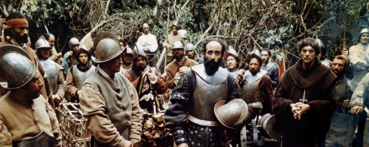 The Andes are thick with fog, its white all-encompassing tendrils consuming the conquistadors descending into its depths. Even as it clears, revealing the pale blue sky above a mottled green canopy and rotten brown rivers, the atmosphere of portentous doom remains. Only Aguirre, “the wrath of God” (Klaus Kinski) seems immune to the heavy weight of insidious death; he stands alone as a cool white sun in an infinity of suffering.