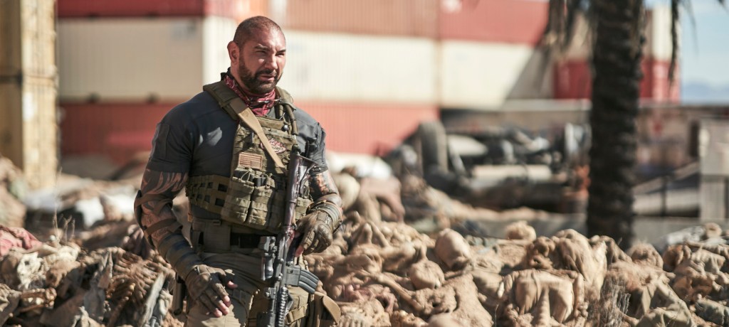 Cool; but this is also a heist movie. Ergo down-on-his-luck macho mercenary (Dave Bautista) assembles his crack squad of specialists (the sarcastic helicopter pilot, the surly navigator, etc) to boost the safe of a very zombie-infested casino. Great so far, but Snyder’s brains must have been devoured before he wrote the script because the result is a misfire.